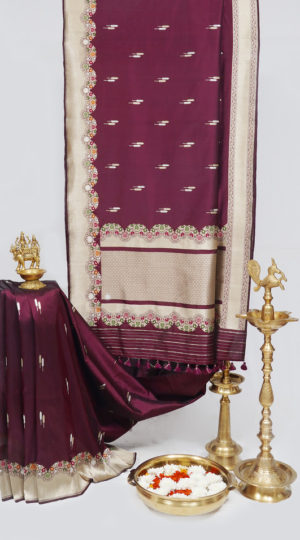 Burgundy Banarasi Katan Silk Saree