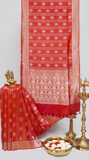 Red Banarasi Mashru Silk Saree