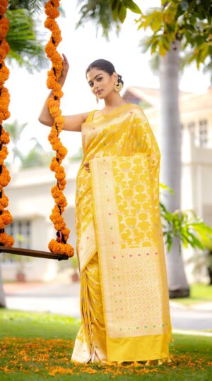 Yellow Color Banarasi Katan Silk Saree
