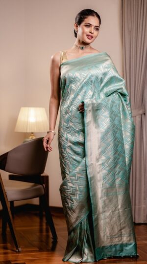 Pastel Blue Pure Katan Silk Banarasi Saree
