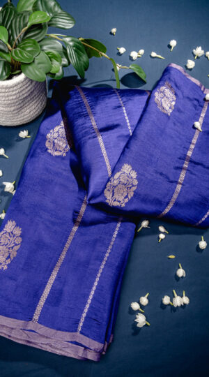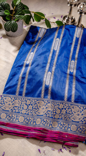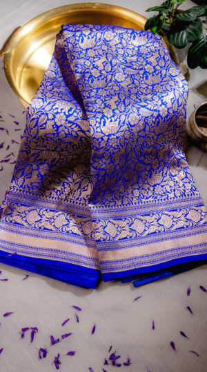 Pure Royal Blue Silk Banarasi Saree