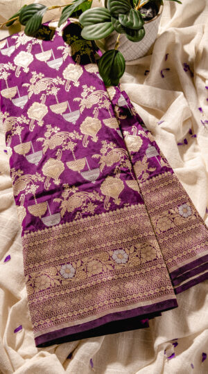 Purple Banarasi Mashru Silk Saree