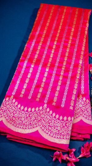 Pure Kora Silk Banarasi Handloom Saree In Shades Of Pink