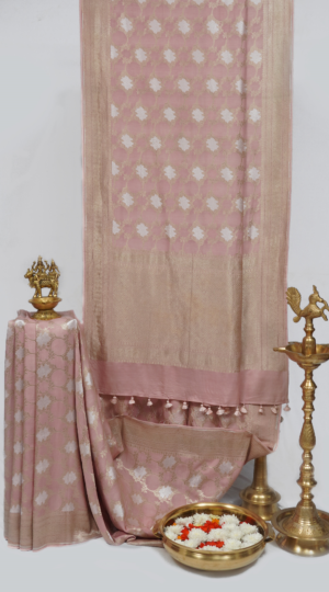 Pastel Rose Pink Banarasi Munga Saree
