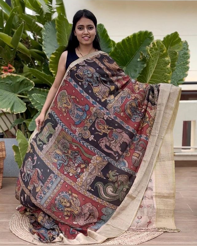 Black And Red Pen Kalamkari Saree