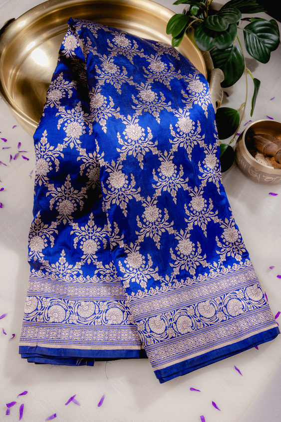 Deep Blue Pure Katan Silk Banarasi Handloom Saree