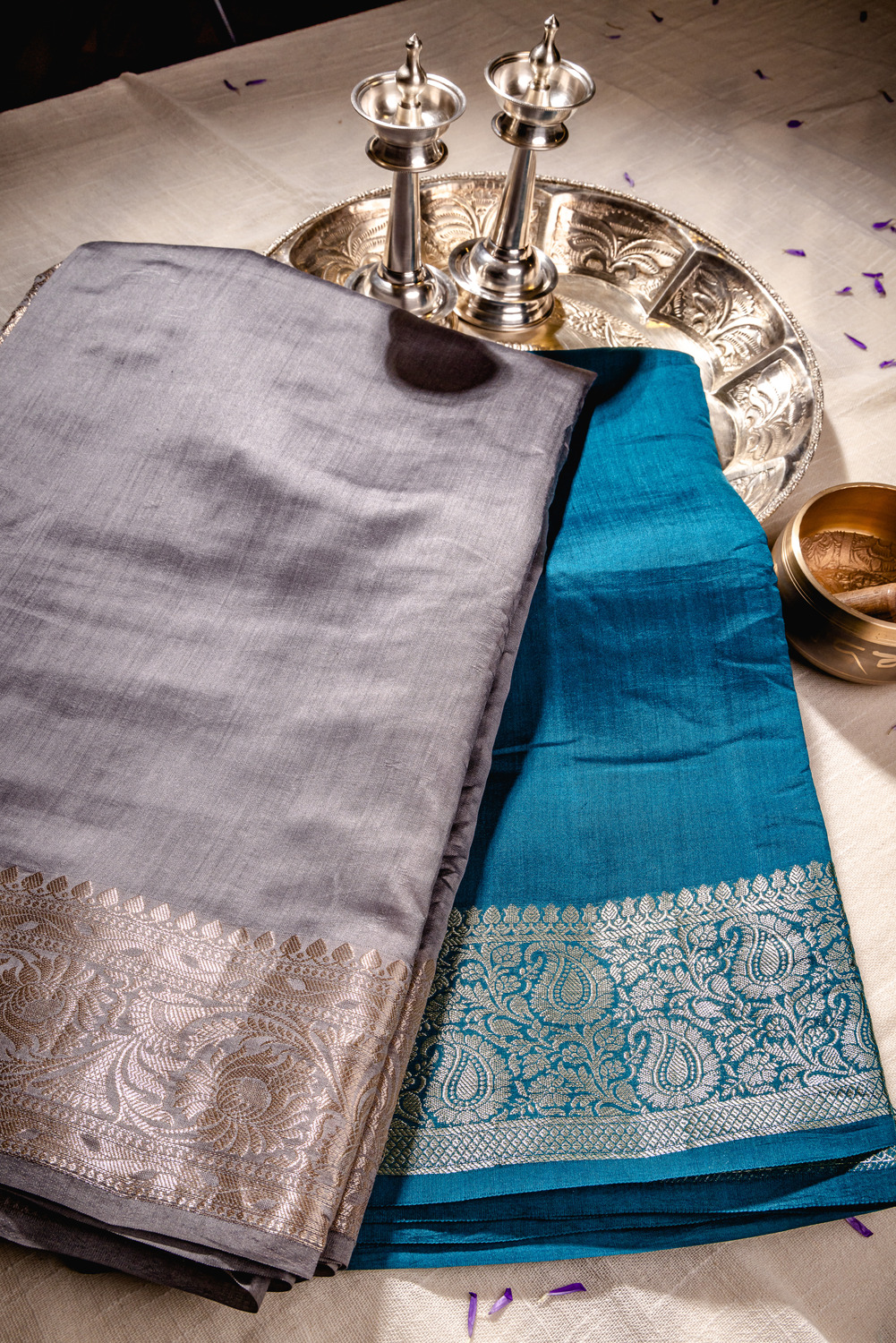 Stunning Blue and Grey Silk Saree Set 2